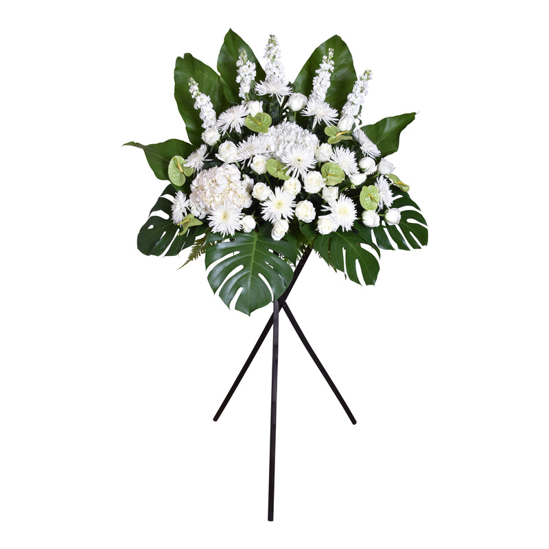 Express your heartfelt condolences with this wooden flower stand.