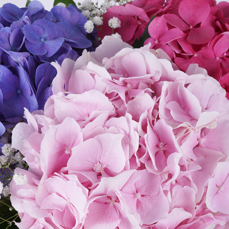Purple Hydrangea (1 Stalk), Pink Hydrangea (1 Stalk), Light Pink Hydrangea (1 Stalk), White Baby Breath