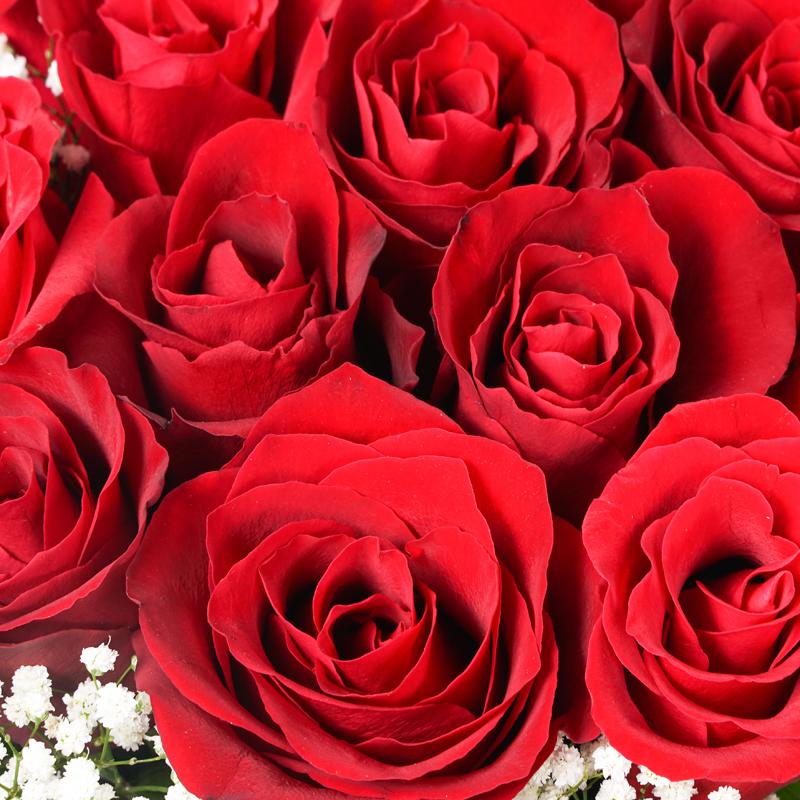 Red roses (13 Stalks), White Baby Breath