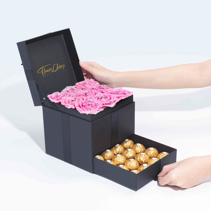 A treasure trove of timeless romance, passion and a little bit of magic; presented elegantly in a box of fresh roses and chocolates –fit for that burning love of your life.