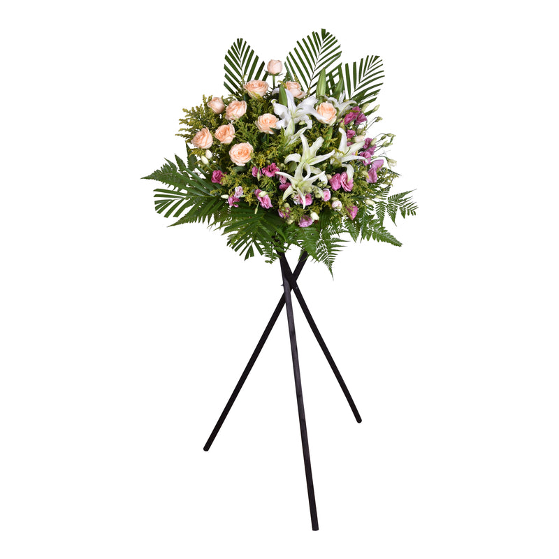 Express your heartfelt condolences with this wooden flower stand.